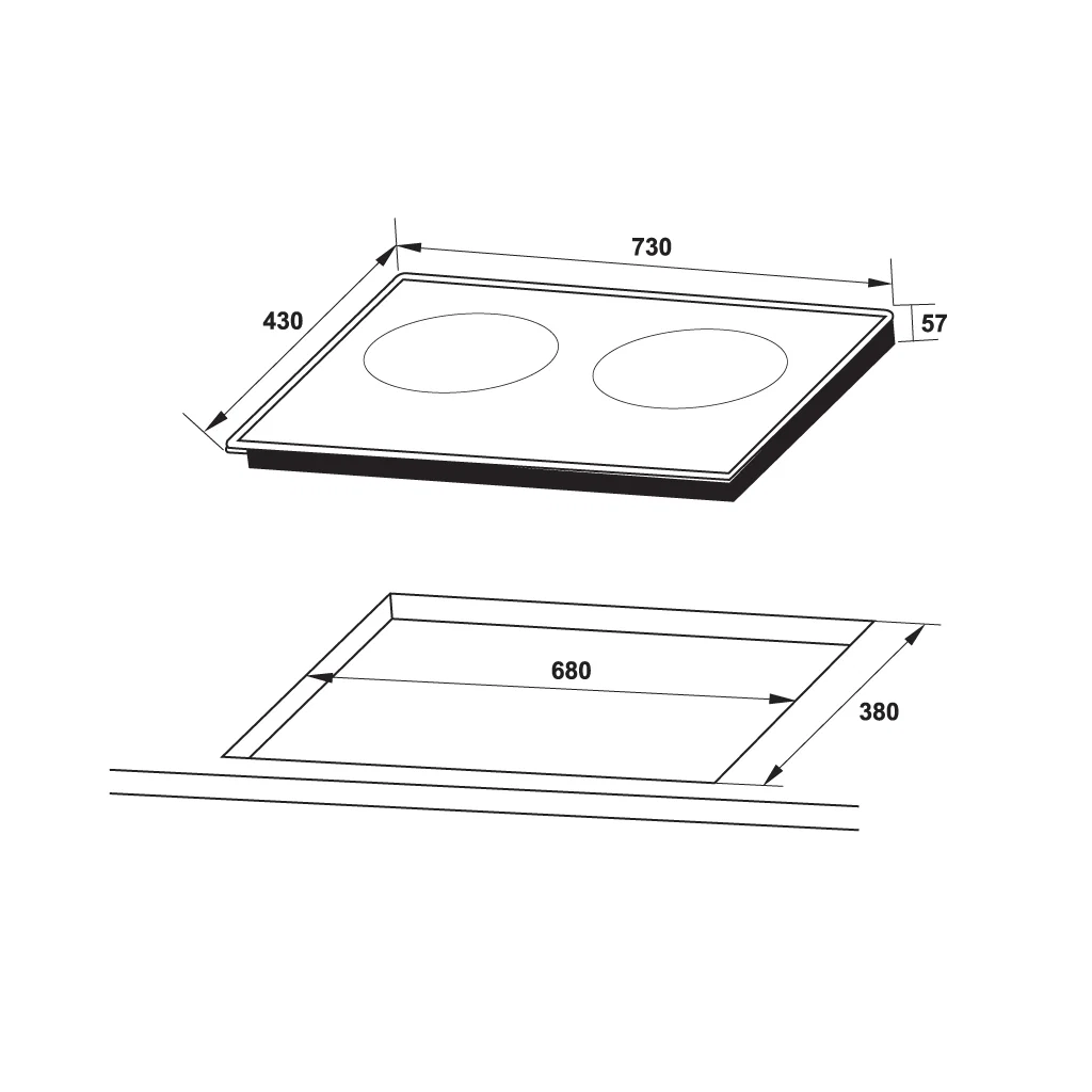 | Kích thước lắp đặt | 680R x 380S mm |